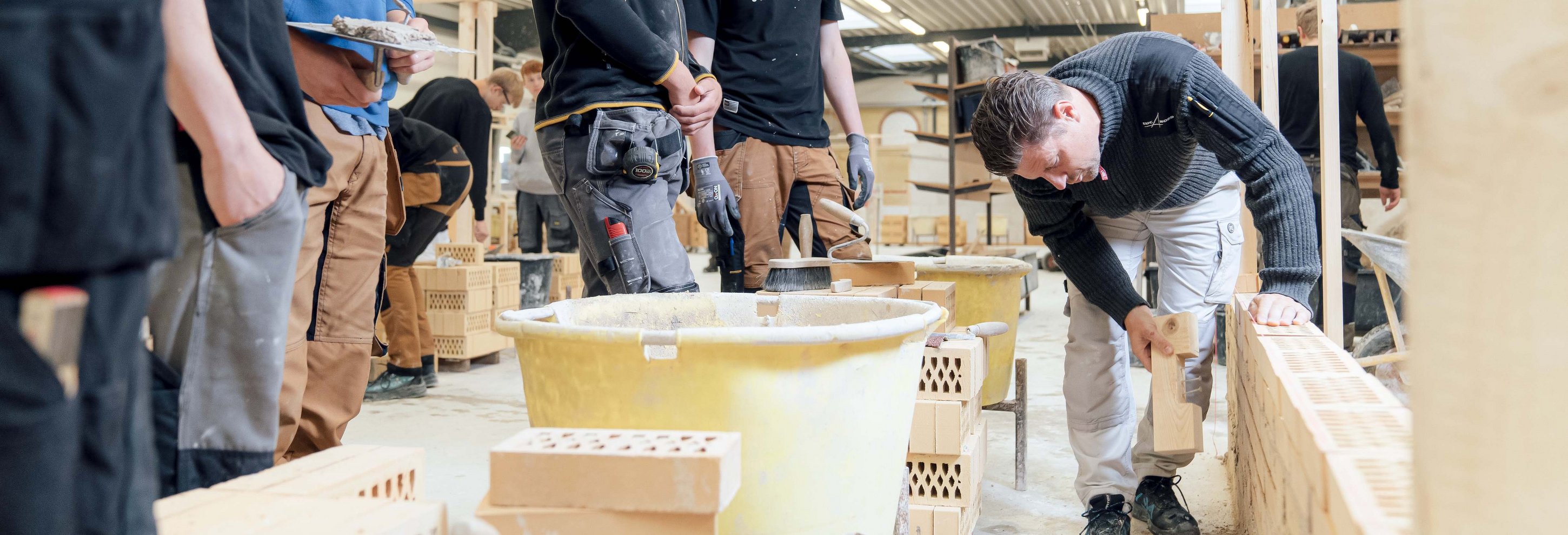 I Energi & Byggeri arbejder vi meget på byggepladsen. Du vil få kendskab til et komplet byggeprojekt fra start til aflevering af det færdige hus. Vi læser en byggetegning, med alle dens tekniske symboler og tegn. Vi ser på, hvordan det foregår, når der sættes sokkel af til fundamentet i et hus og vi arbejder med materialerne, som mureren anvender.