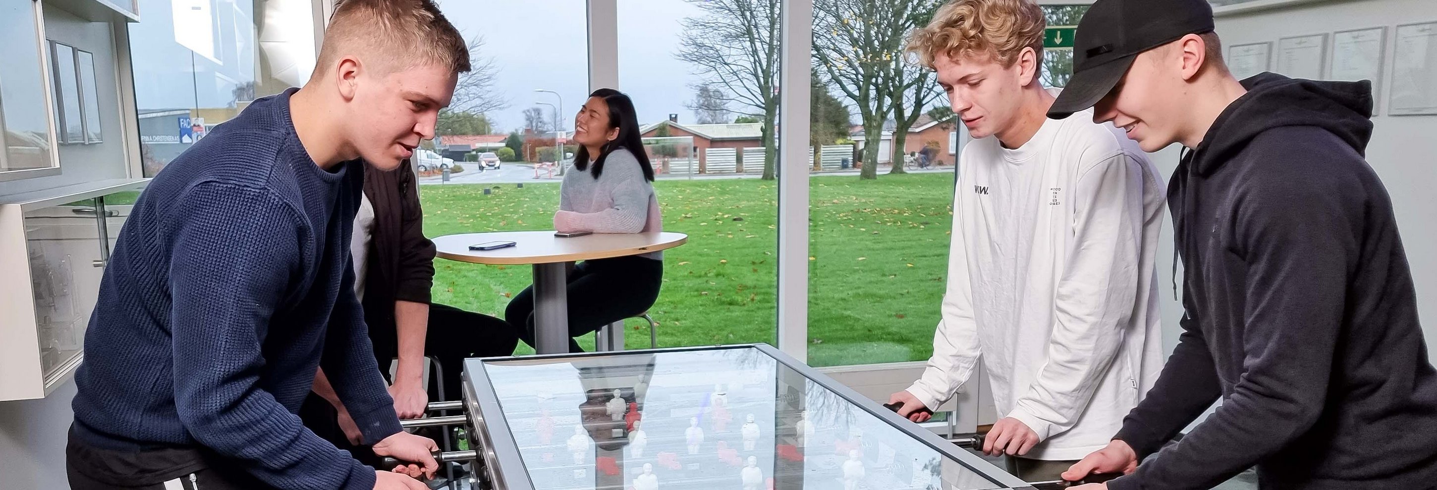 På HTX kan vi godt lide at være sammen. Både når vi har undervisning, når vi holder pauser, når vi laver projekter, og når vi hygger os med fest, fredagscafé, studietur og en kage fra kantinen.