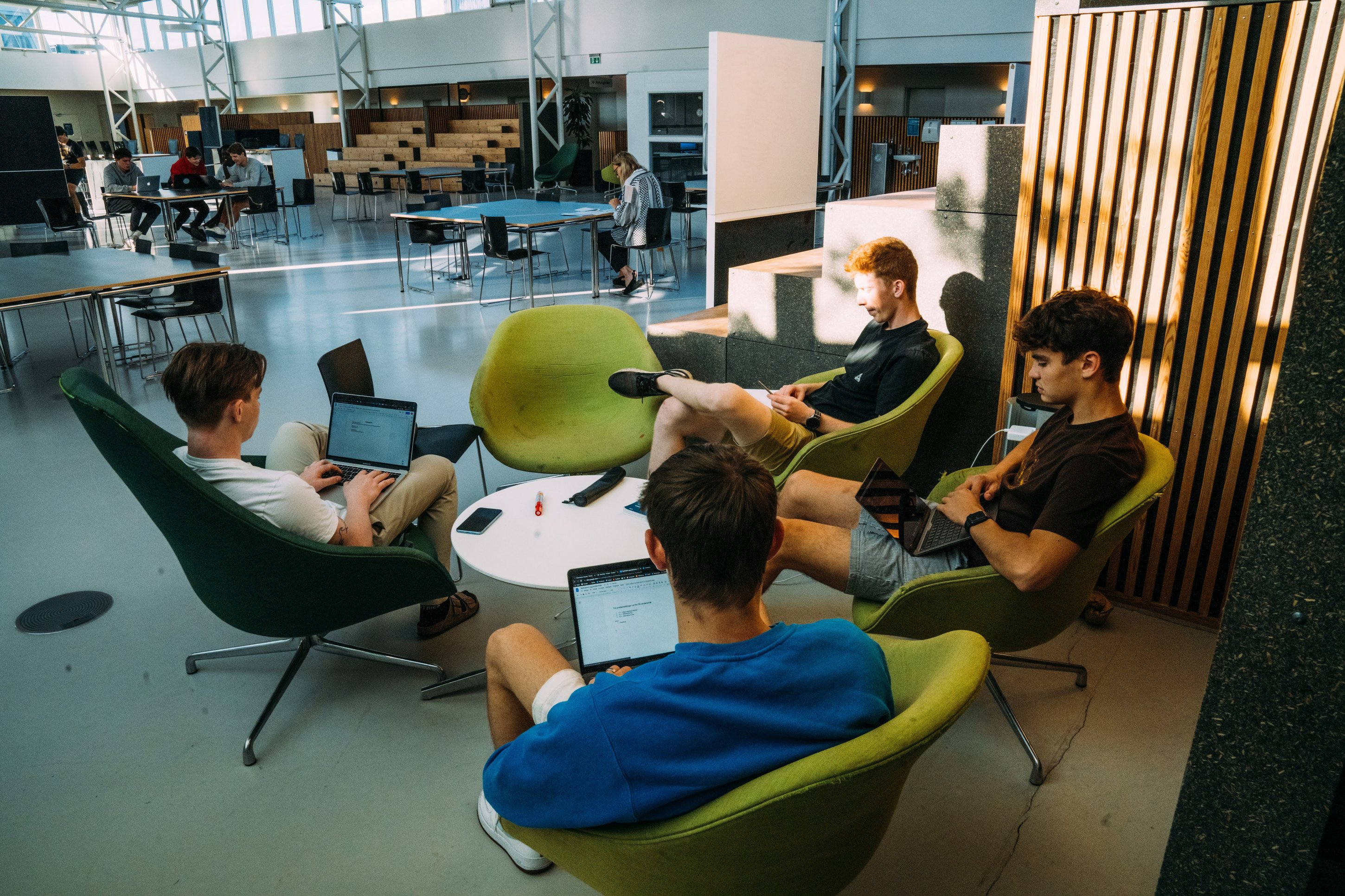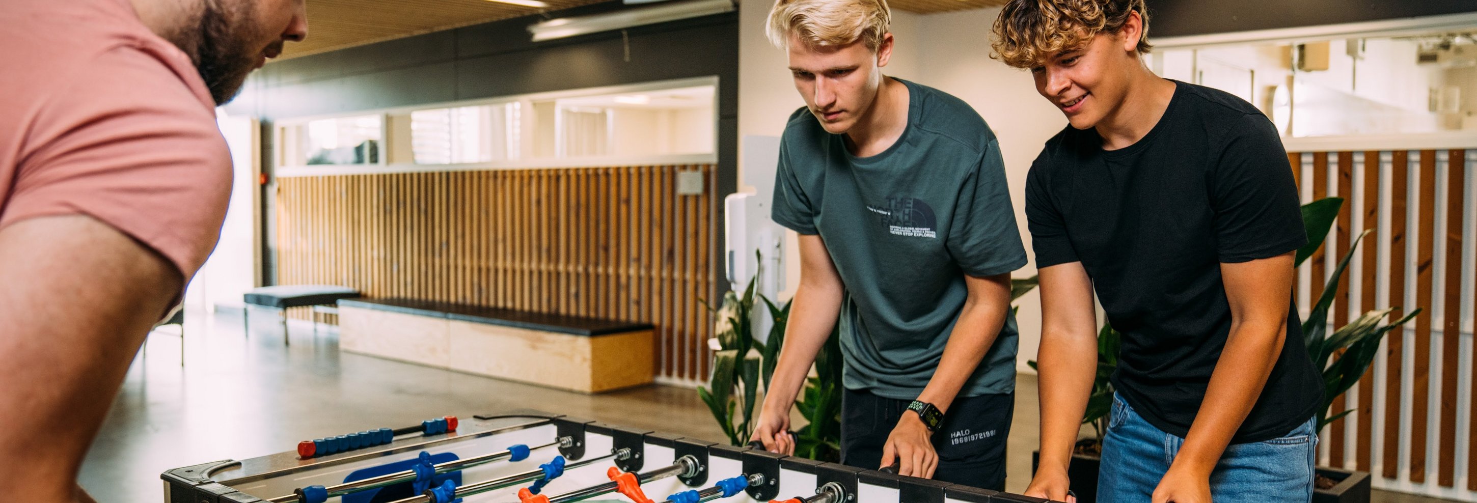 På HTX kan vi godt lide at være sammen. Både når vi har undervisning, når vi holder pauser, når vi laver projekter, og når vi hygger os med fest, fredagscafé, studietur og en kage fra kantinen.